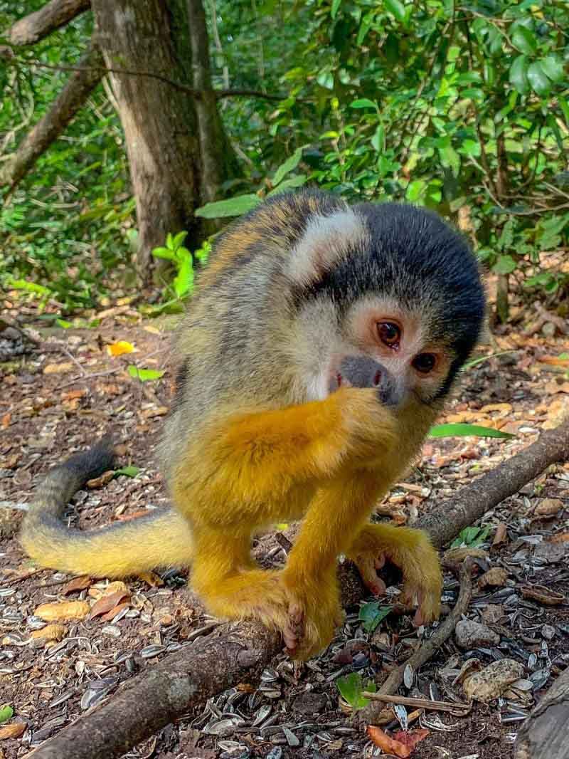 I love to run through the tree canopy chasing after my friends. Squirrel monkeys like me can travel at speeds of up to 22 miles per hour that’s more than 35 kilometers an hour! Faster than you humans.